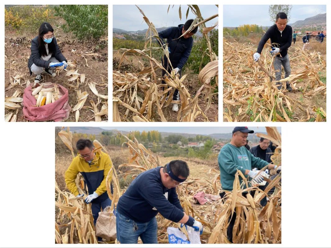 玉米地內(nèi),大家擼起袖子默契協(xié)作,有的采摘玉米,有的負(fù)責(zé)運(yùn)送,有的負(fù)責(zé)砍玉米桿……處處都是大家忙碌的身影。經(jīng)過(guò)大半天的齊心協(xié)力,大家終于把玉米全部收完。
